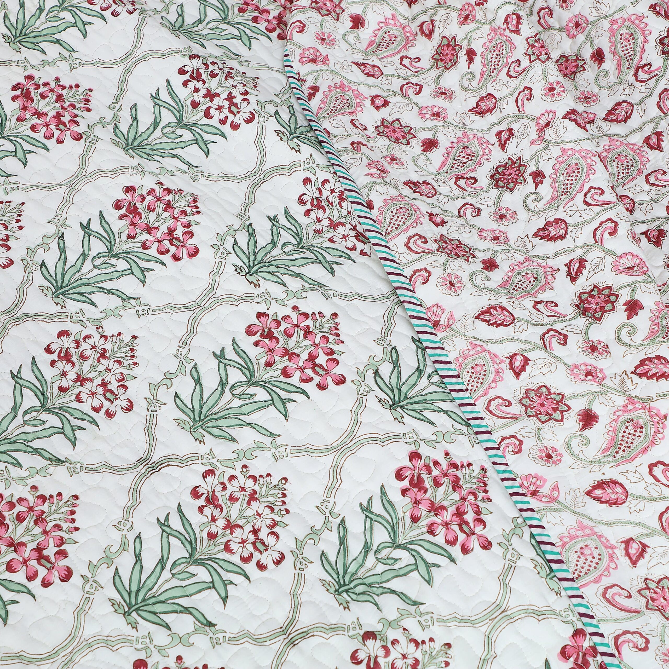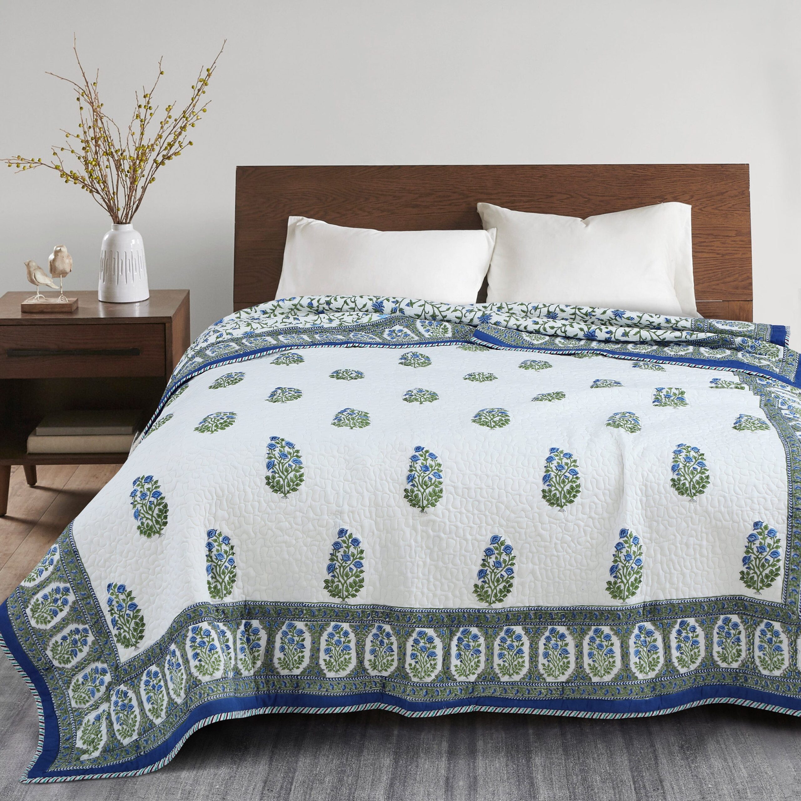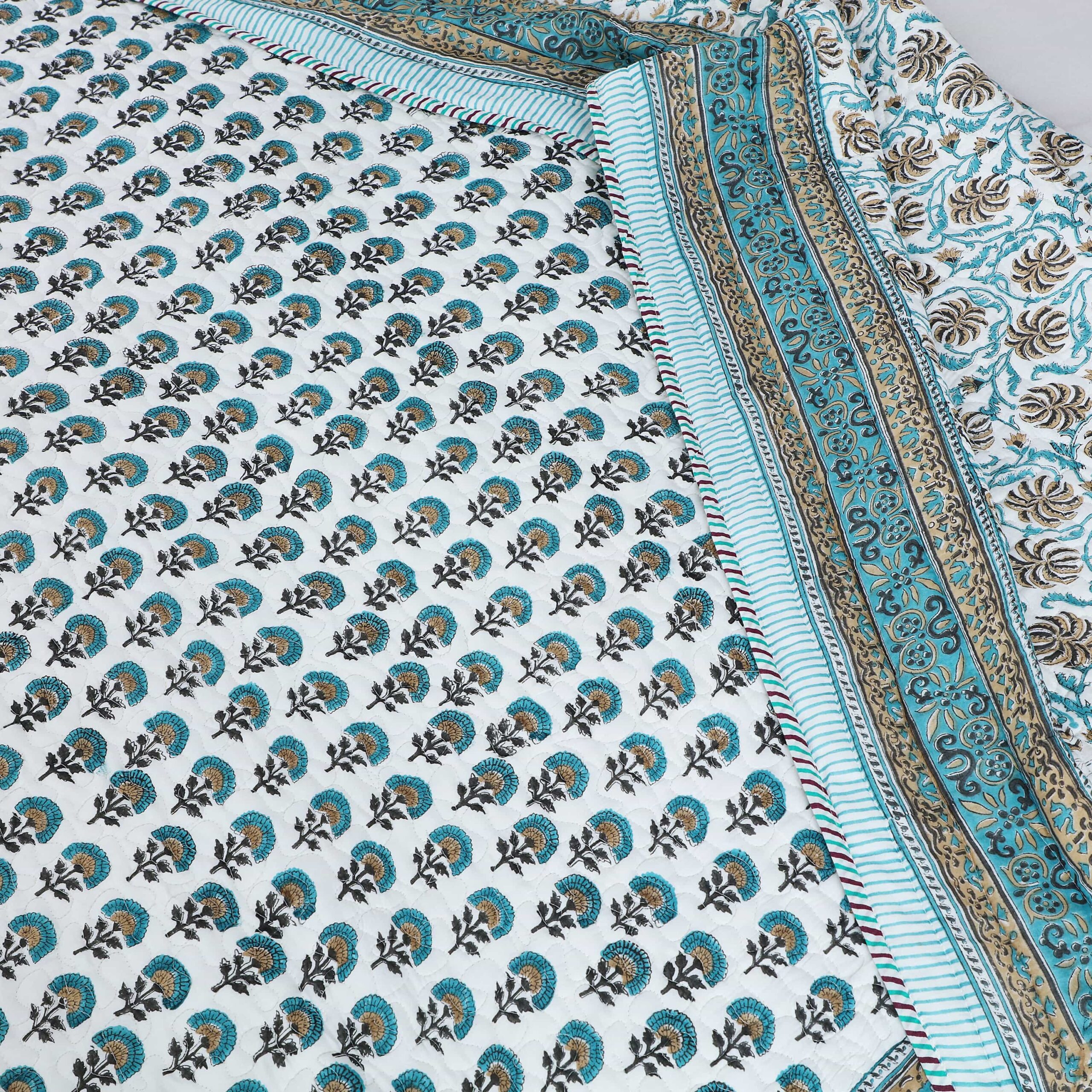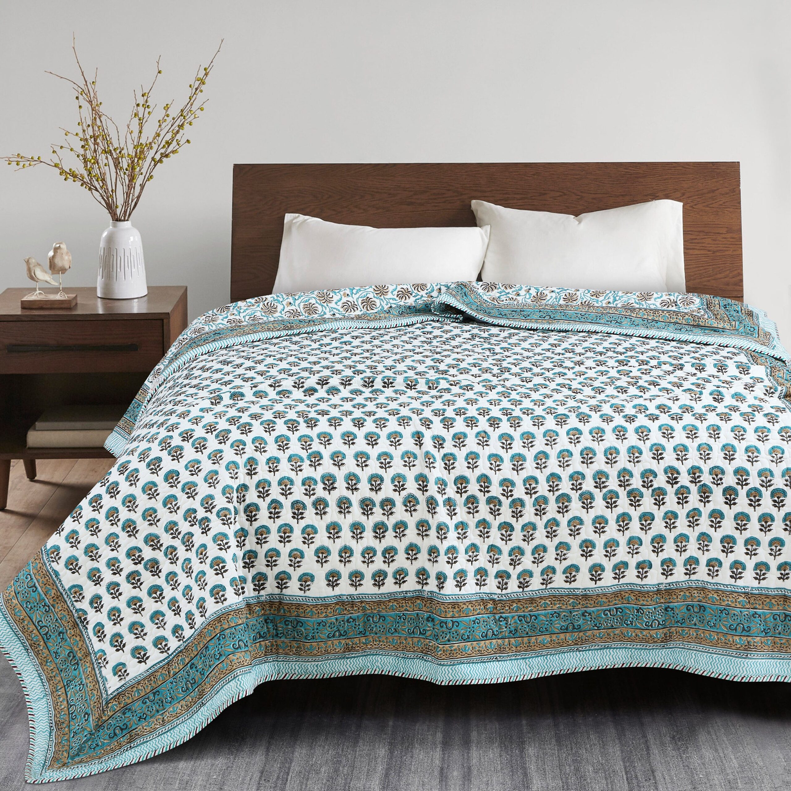Introducing a reversible light quilt, perfect for summer nights and particularly when using air conditioning. This quilt is lighter than a traditional razor and can also be used as a soft quilt that you can snuggle into at night. The Summer Cotton AC Quilt Online is made up of two layers of hand-block printed muslin with a middle layer of cotton, providing both comfort and breathability.