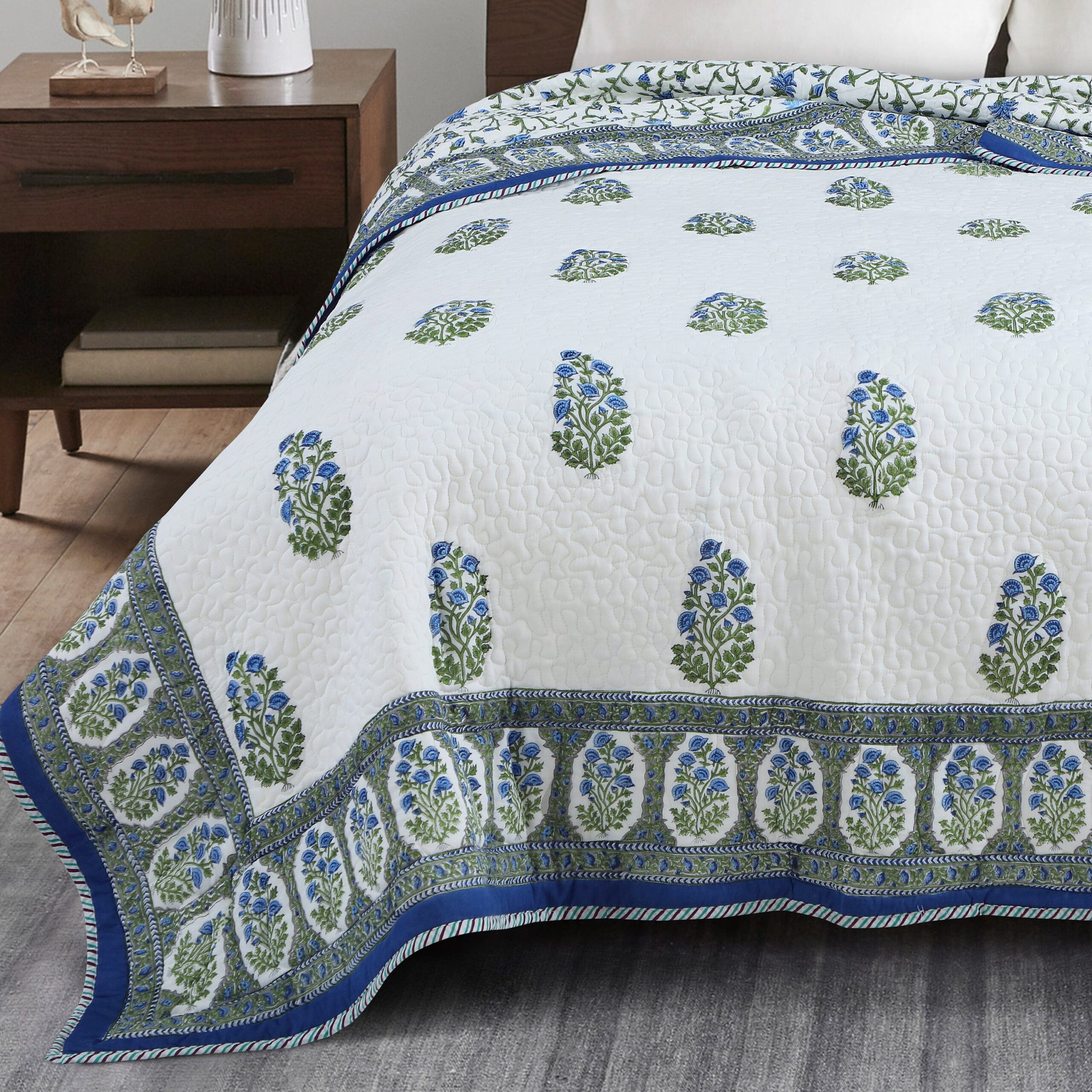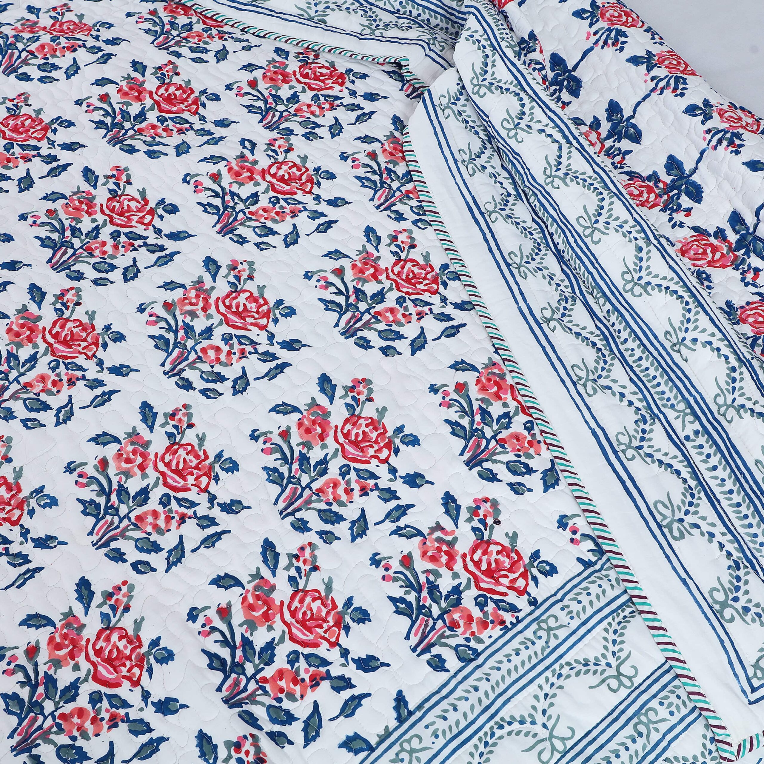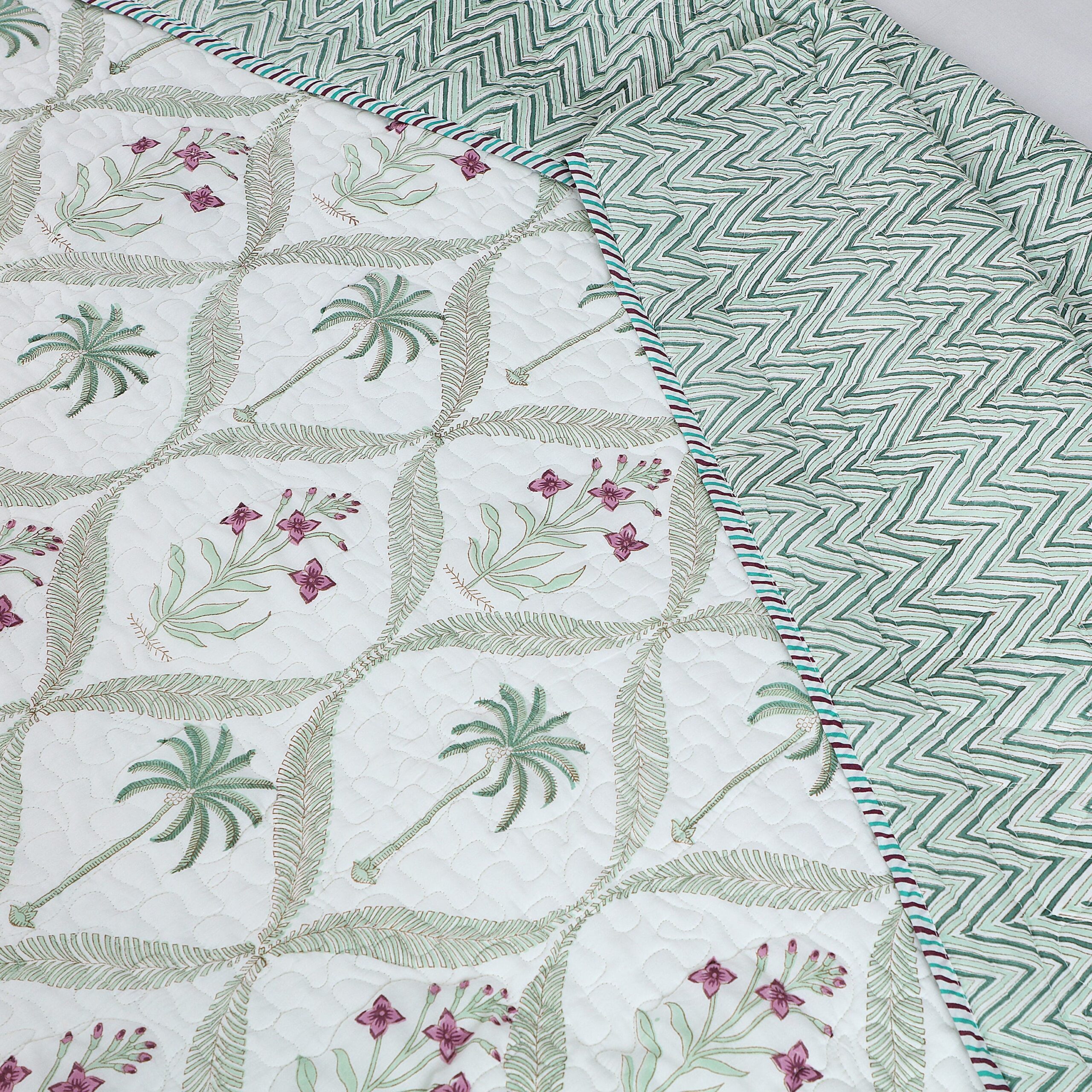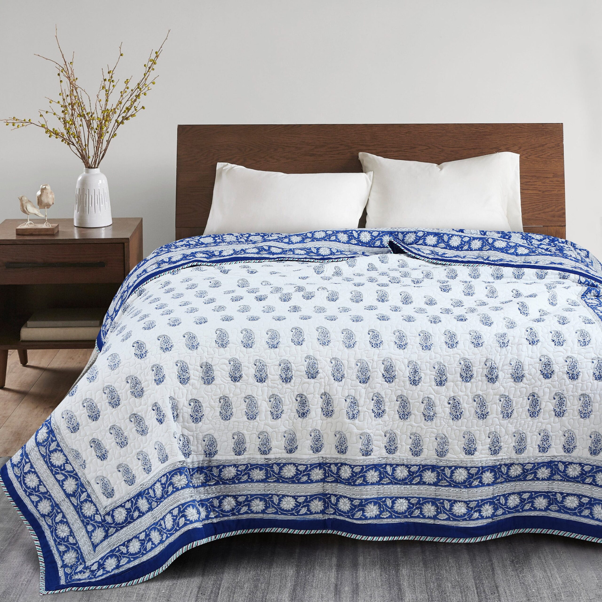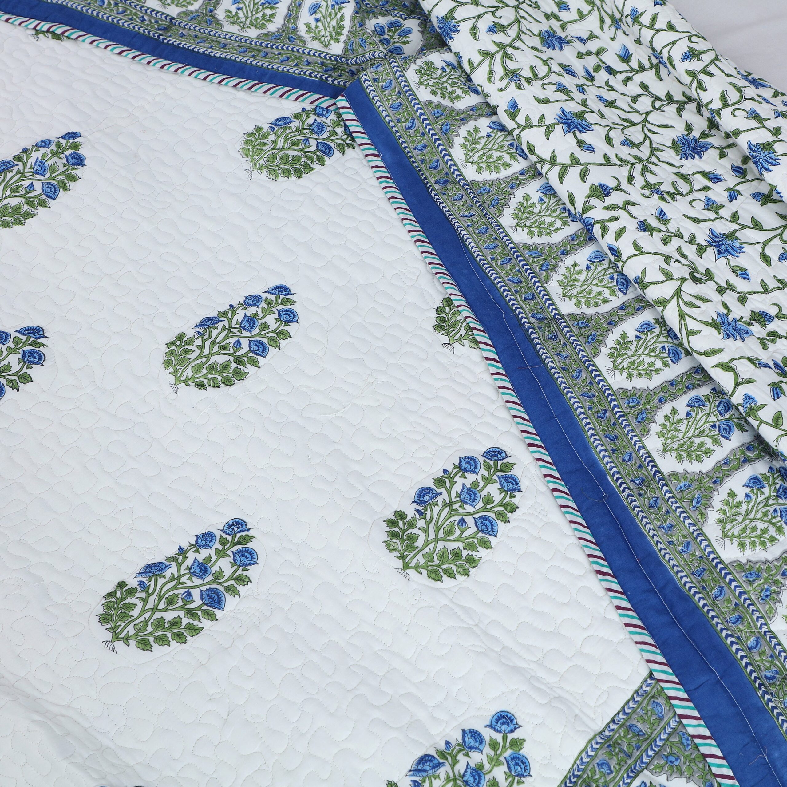 Introducing a reversible light quilt, perfect for summer nights and particularly when using air conditioning. This quilt is lighter than a traditional razor and can also be used as a soft quilt that you can snuggle into at night. The Summer Cotton AC Quilt Online is made up of two layers of hand-block printed muslin with a middle layer of cotton, providing both comfort and breathability.